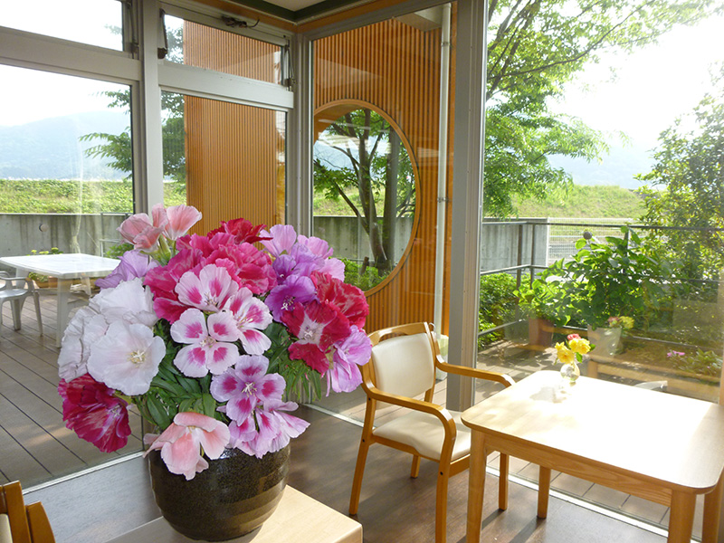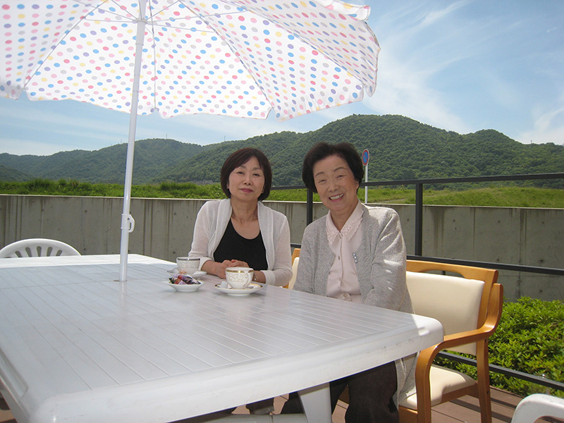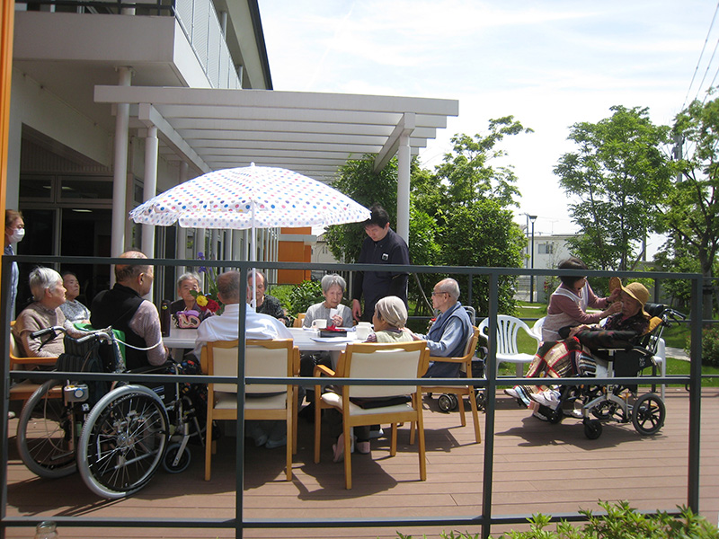 陽のあたるオープンテラスでひなたぼっこ